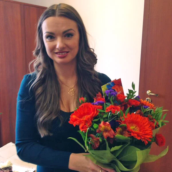 Очень понравилась оперативность! От мысли поздравить до вручения прошел всего 1 час!!! Разница между городами 1500 км!!!