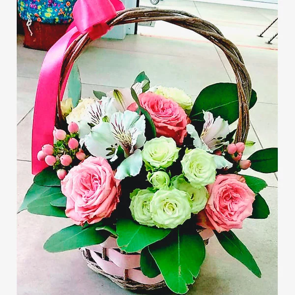 Хорошая корзина цветочная. Небольшая но очень нежная! Спасибо за доставку .